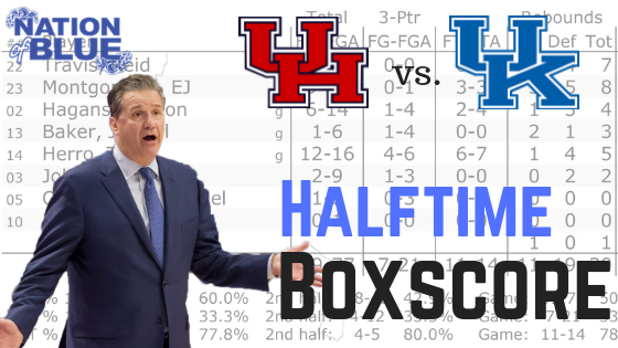 Basketball Halftime Boxscore: Kentucky vs. Houston By Chad Pugh Posted on Mar 29, 2019 Share Tweet Share Share Email Comments Halftime: Kentucky 37 Houston 26 Here is a look at the first half stats. Related Items:BBN, Halftime Boxscore, houston basketball, kentucky basketball Share Tweet Share Share Email