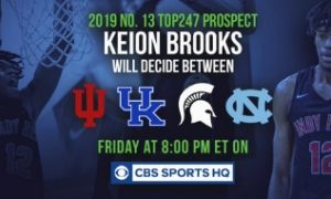 Keion Brooks, one of the top players in the class of 2019, will reportedly decide between Kentucky and Indiana tonight at 8pm...