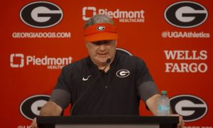 Georgia head coach Kirby Smart talked to the media after his team’s 35-14 win...
