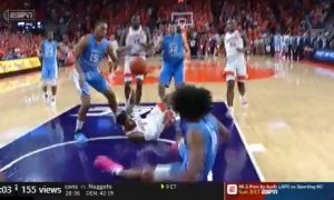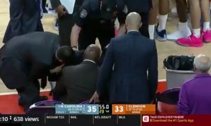 North Carolina head coach Roy Williams collapsed moments ago during the Tar Heels game at Clemson. Here’s footage of Williams going to...
