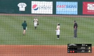 A college baseball game in Jacksonville, Florida was interrupted Sunday when a fish abruptly fell from the sky and landed in the...