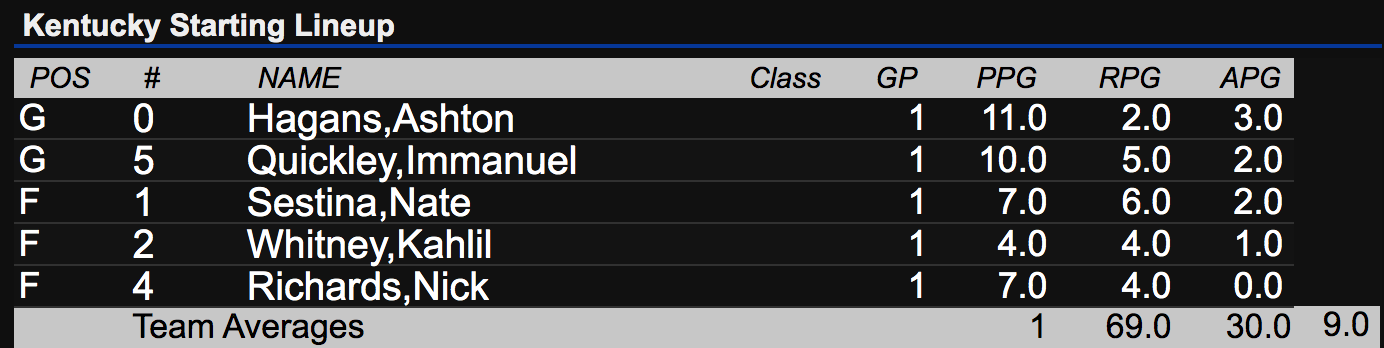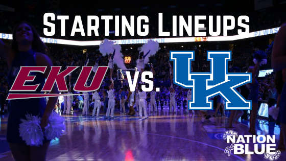 Basketball Starting Lineups: Kentucky vs. EKU By Chad Pugh Posted on Nov 8, 2019 Share Tweet Share Share Email Comments He is a look at tonight’s starting lineups. Related Items:BBN, kentucky basketball, starting lineups Share Tweet Share Share Email