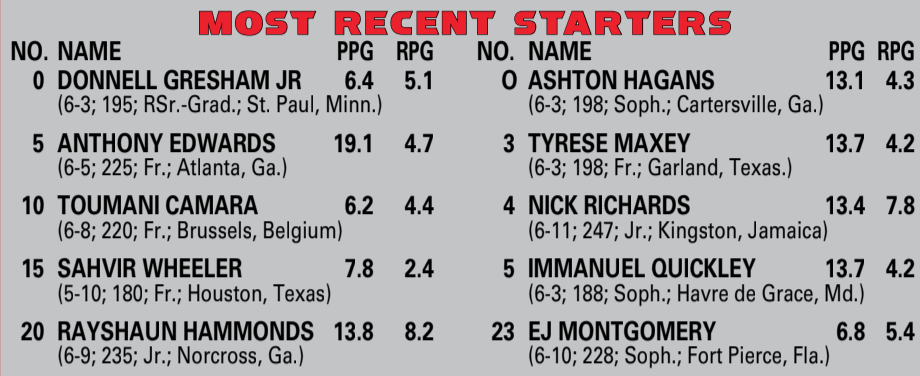 Probable Starters: